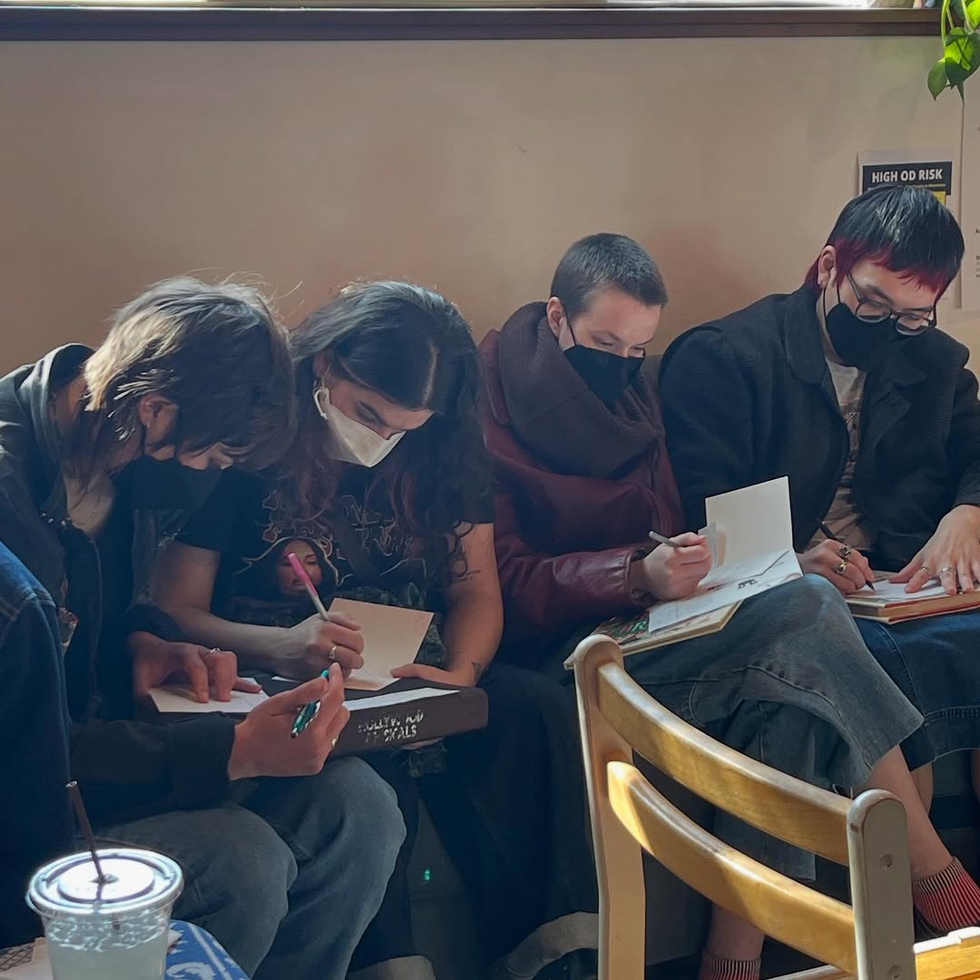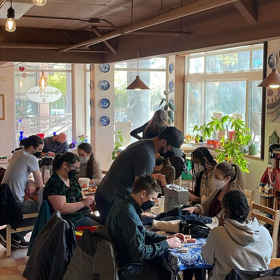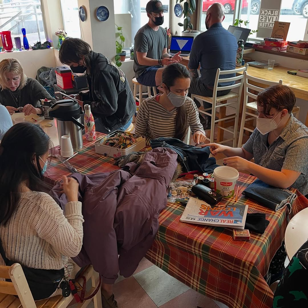 We had volunteers helping with sewing repairs, fixing appliances, reviewing resumes, presenting on how to prevent overdoses, AND @blackandpinkseatac held a letter writing party for LGBTQ+ prisoners in Washington State!!