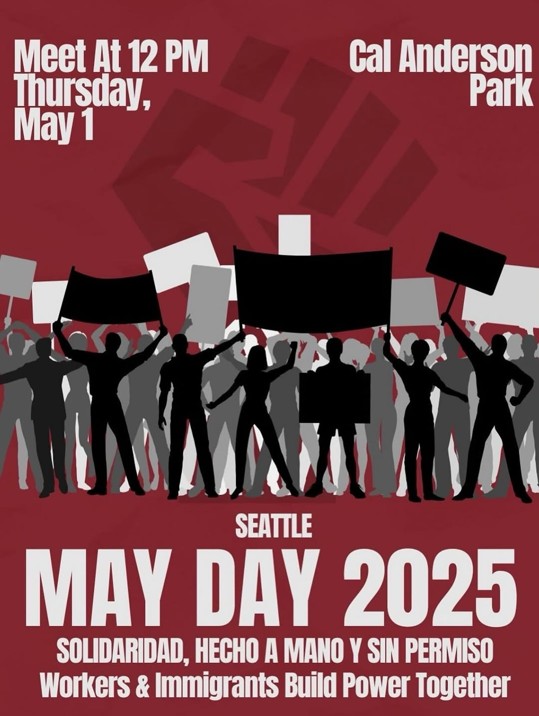 @frso_seattle helped us make zines, protest signs and they presented on the history of May Day and how in 1886 the working class joined together in the hundreds of thousands to fight for better working conditions, including the 40 hour work week! [ we can bring that down to 25 :) ]